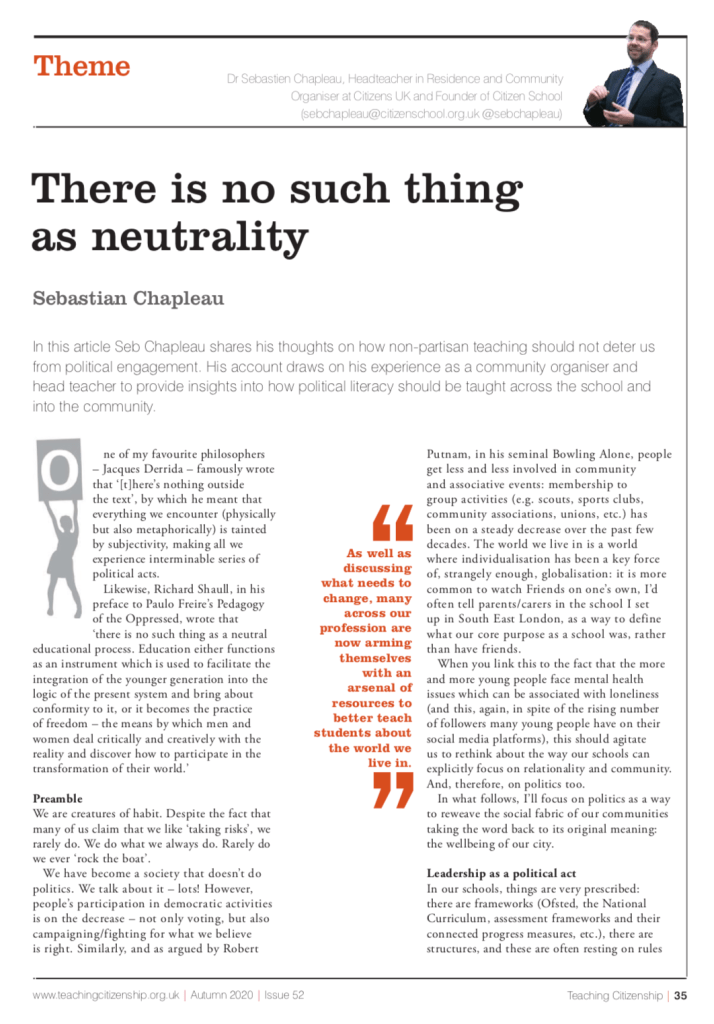 This essay was published in Teaching Citizenship (the magazine for the Association of Citizenship Teachers) – www.teachingcitizenship.org.uk | Autumn 2020 | Issue 52 | pages 35-38